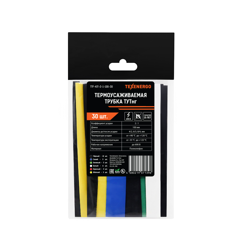 Трубки используются в качестве покрывного материала, который обладает изоляционными, защитными и антикоррозийными свойствами. Термоусаживаемые трубки предназначены для монтажа концевых и соединительных муфт силовых кабелей, изоляции и герметизации жил проводов, мест пайки проводов, для выполнения бандажирования жгутов, проводов, присоединения контактных клемм, кабельных наконечников и штекерных разъемов, предохранения от коррозии стальных труб, а также в качестве декоративного материала и т.д. Технические характеристики:Температура усадки: от +90°С до +120°С, Горючесть - без подавления горения, Относительное удлинение при разрыве не менее 400%, Продольная усадка ≤5%,Радиальная усадка - 2:1, Рабочая температура - от -40°С до +100°С, Рабочее напряжение - до 1кВ, Удельное электрическое сопротивление - 1014Ом/см, Цвета - черный, синий, красный, зеленый, желтый, желто-зеленый,