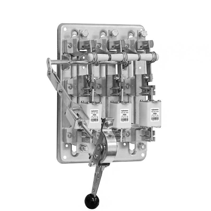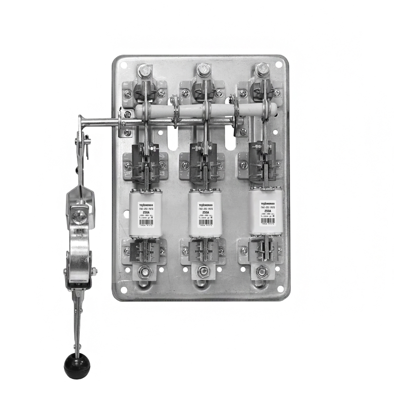 РПС: Р - рубильник, П - предохранители, С - смещенная рукоятка. Рубильники серии РПС с боковым смещённым приводом предназначены для пропускания номинальных токов, неавтоматического включения и отключения без нагрузки электрических цепей номинальным напряжением до 500В переменного тока номинальной частоты 50 и 60 Гц в устройствах распределения электрической энергии. Аппарат отключает электрическую цепь при превышении номинального тока посредством плавких вставок. Вид климатического исполнения У3 по ГОСТ 15150.