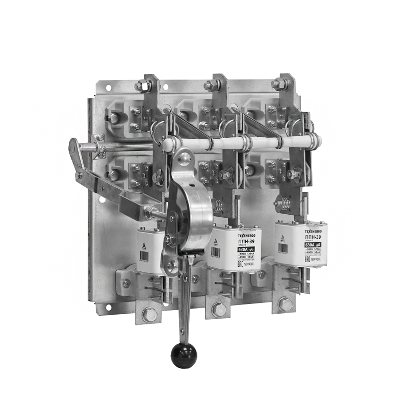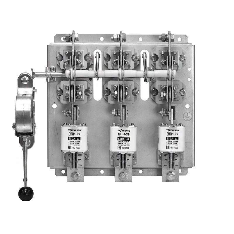 РПС: Р - рубильник, П - предохранители, С - смещенная рукоятка. Рубильники серии РПС с боковым смещённым приводом предназначены для пропускания номинальных токов, неавтоматического включения и отключения без нагрузки электрических цепей номинальным напряжением до 500В переменного тока номинальной частоты 50 и 60 Гц в устройствах распределения электрической энергии. Аппарат отключает электрическую цепь при превышении номинального тока посредством плавких вставок. Вид климатического исполнения У3 по ГОСТ 15150.
