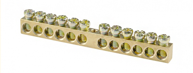 Применяются в щитовом оборудовании для подсоединения нулевых рабочих (N) и нулевых защитных проводов (PE). Крепление шины предусмотрено по центру (типы 8/1,14/1) и по краям (типы 8/2,14/2) через изолятор нулевой шины на 35 мм монтажную DIN-рейку и через угловые изоляторы нулевой шины, а так же непосредственно на панель щита. Материал шины: латунь