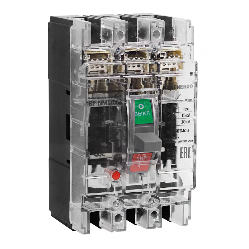 Выключатели нагрузки (выключатели-разъединители) серии ВР-NM1 в прозрачном корпусе применяются для размыкания и замыкания цепи в нормальном режиме работы, в трехфазных сетях напряжением 400/660В и частотой 50 Гц. Позволяют быстро и легко отключить центральную питающую сеть для планового обслуживания или в случае обнаружения неполадок. Видимый разрыв контактов обеспечивает полную безопасность при проведении работ. Прозрачный корпус позволяет оценить состояние контактов без необходимости разбора корпуса, что дает возможность контролировать его на любых этапах эксплуатации, позволяет минимизировать риски и экономит время и затраты на обслуживание. Преимущества: Визуальный контроль за состоянием деталей и узлов. Высокая надежность и долговечность конструкции. Относительная простота конструкции. Четыре стандартизованных типоразмера. Номинальные токи от 63 до 630А Система дугогашения состоит из равноудаленных пластин (дугогасительных камер), способствующих быстрому гашению дуги. Устойчивость к воздействиям окружающей среды. Выполнено из термостойкой пластмассы.