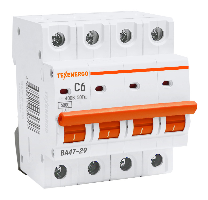Назначение Автоматические выключатели серии ВА 4729, современные малогабаритные аппараты модульного исполнения, предназначены для защиты электрических цепей и электрооборудования от перегрузок и коротких замыканий (сверхтоков), а также для оперативного включения и отключения электрооборудования. Рабочее напряжение на один полюс 230 В частотой 50 Гц. Выпускаются как в однополюсном исполнении, так и в виде блоков: двух-, трех-, и четырехполюсном исполнений. Характеристики электромагнитных расцепителей определяющих порог их срабатываний при защите от коротких замыканий делятся на три группы: B – 3 In-5 In, С – 5 In-10 In, D – 10 In-20 In (включительно). ВА 4729 рекомендуются к установке в этажные щиты и вводно- распределительные устройства жилых, общественных и производственных зданий. Выключатели могут использоваться в цепях постоянного тока напряжением до 48 В на полюс и токе нагрузки не менее 10 мА. Основные технические характеристики: Номинальный ток: от 0,5 до 63 А Отключающая способность: 6 кА Время-токовые характеристики: B, C и D Полная совместимость с дифференциальными автоматами, УЗО, выключателями нагрузки и прочими модульными устройствами производства TEXENERGO. Модульные автоматы класса А (европейского уровня). Преимущества: Наплавка из серебросодержащего композита повышает износостойкость и снижает переходное сопротивления контактной группы. Наши изделия успешно прошли испытания в лаборатории DEKRA – международном лидере в области независимой экспертизы и безопасности. Автоматические выключатели серий ВА47 полностью соответствуют всем ГОСТам и ТУ, разработанным для производства данной продукции. Отсутствие нареканий и возвратов на продукцию. Качество наших автоматических выключателей подтверждается многолетней практикой эксплуатации как нашими клиентами, так и собственным щитовым производством. Выключатель может комплектоваться дополнительными устройствами с возможностью простой самостоятельной установки: - контакт сигнализации, - сигнальная лампа ЛС-47, - вспомогательный контакт, - независимый расцепитель, - пломбируемая клеммная заглушка, - расцепитель минимального и максимального напряжения. Широкий диапазон рабочих температур от – 40 °С до + 50 °С. Допустимый момент затяжки винта был специально доработан и превышает стандартные требования. Не наносят вред окружающей среде, так как состоят из материалов, пригодных для вторичной переработки.