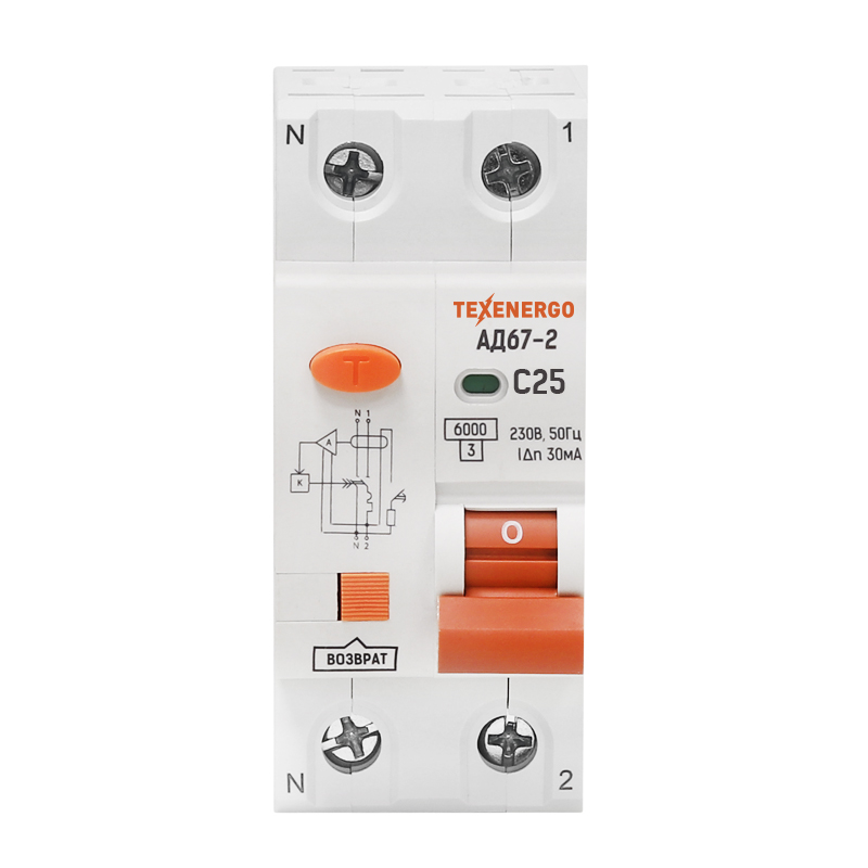 НОВИНКА!!! АД67-2 с электронной платой (номинальный ток от 6 до 63А) АД67-2 – это электронный автоматический выключатель дифференциального тока, состоящий из автоматического выключателя с механизмом свободного расцепления и устройства защитного отключения, в котором находится дифференциальный трансформатор тока с усилителем. Выключатели выполняют функцию обнаружения тока утечки в зоне защиты, сравнивают его с дифференциальным током срабатывания (уставкой) и, если величина тока утечки больше тока уставки, отключают электрическую цепь. АД67-2 обеспечивают защиту: - людей от поражения электрическим током в случае прикосновения к открытым токоведущим частям электрооборудования, - электрических цепей и электроприборов от сверхтоков (перегрузок и коротких замыканий) - оборудования при повреждении изоляции проводников - от пожара при возникновении токов утечки Основная область применения АД67-2 – распределительные, учетно-распределительные щиты жилых и общественных зданий, щиты квартирные, устройства временного электроснабжения, строительные площадки, садовые дома, гаражи, объекты розничной торговли. Преимущества: - Электронная плата с дополнительной защитой от импульсных помех - Кнопка возврата для индикации срабатывания защиты от сверхтока (перегрузка или короткое замыкание) - Номинальная отключающая способность 6кА - Окно индикации состояния контактов - Корпус из пластмассы, не поддерживающей горение