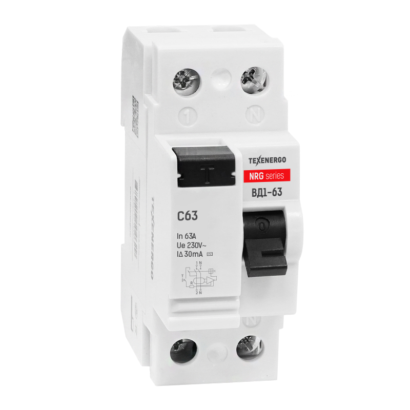 Выключатели автоматические, управляемые дифференциальным током, без встроенной защиты от сверхтоков, функционально не зависящие от напряжения сети, типа ВД1-63-NRG (УЗО) торговой марки TEXENERGO подходят для однофазных и трехфазных сетей, рабочего напряжения до 400В, частотой 50 Гц. Основные функции и защитные возможности: обнаружение дифференциального тока и его сравнение с заданным значением отключения, отключение цепи при превышении допустимого уровня дифференциального тока. Защитные функции: защита от поражения током при косвенном контакте с поврежденными проводящими частями (ВД с номинальным отключающим дифференциальным током IΔn = 10, 30, 100 мА), дополнительная защита в случае выхода из строя устройств, предназначенных для защиты от поражения электрическим током (ВД с номинальным отключающим дифференциальным током IΔn = 30 мА). Области применения: распределительные щиты в жилых домах, электрощиты общественных зданий, временные электросети на строительных площадках, садовые домики, гаражные помещения, торговые объекты, и т.п.