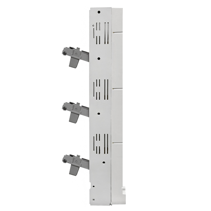 Вертикальный предохранитель-выключатель-разъединитель ППВР ТМ TEXENERGO предназначен для использования в сетях переменного тока (50 Гц, до 400 В, до 630 А). Обеспечивает удобное переключение вводов/выводов, независимое или одновременное отключение фаз. Широко применяется в распределительных устройствах и блочных подстанциях. Основные характеристики: - Номинальное напряжение: до 400 В - Номинальный ток: до 630 А - Импульсное напряжение: 12 кВ - Температура эксплуатации: от -5°C до +40°C - Степень защиты: высокая (корпус из огнестойких материалов DMC и PA66) - Тип монтажа: вертикальный Преимущества: - Удобное управление фазами (раздельное/групповое) - Безопасная конструкция с изолированными клеммами - Быстрый монтаж и обслуживание - Совместимость с плавкими вставками ППН Применение: Распределительные щиты, подстанции, промышленные электроустановки.