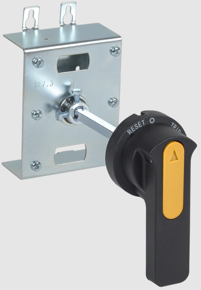 Ручной поворотный привод ПРПм предназначен для преобразования вращательного движения в поступательное для управления автоматическим выключателем ВА88 MASTER. Привод закрепляется на двери распределительного устройства для оперирования выключателем через дверь или непосредственно на выключателе.